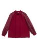 - بلوز زنانه مجلسی آستین بلند کرپ حریر یقه گره ای آرامش زرشکی