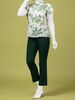 - بلوز زنانه کرپ حریر طرح دار آستین چین دار نرمین سبز