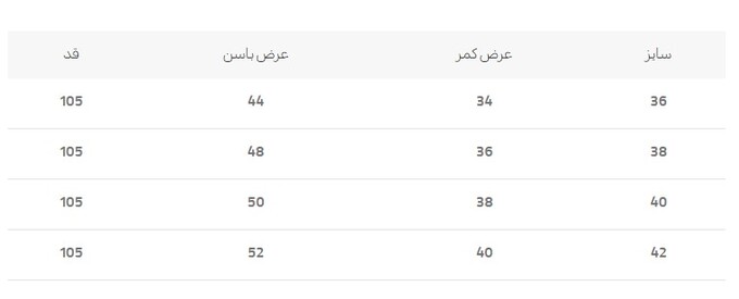 عرضهشده در سایزهای متنوع ۳۶، ۳۸، ۴۰، ۴۲ و ۴۴، با تنخور خوشفرم و کمری استاندارد که برای استفاده روزمره، دورهمی یا استایلهای خیابانی و مینیمال انتخابی عالی محسوب میشود.