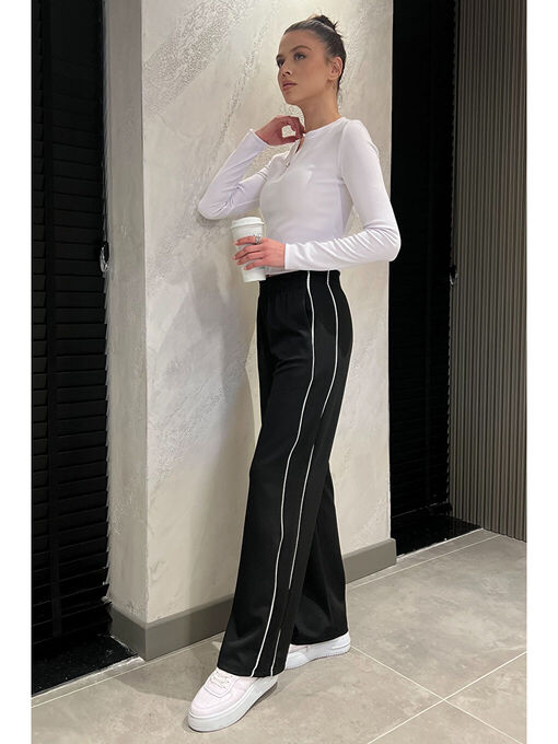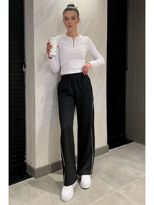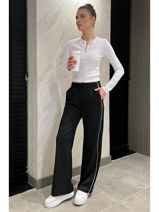 - BEL LASTIKLI YAN ŞERITLI BOL PAçA KADıN PANTOLON
