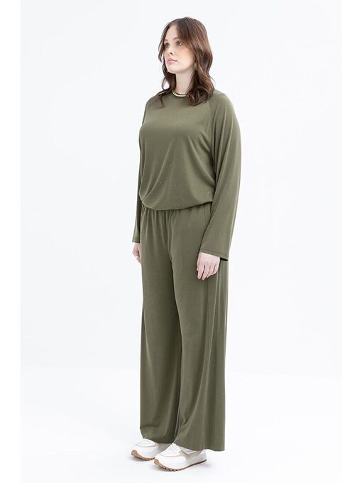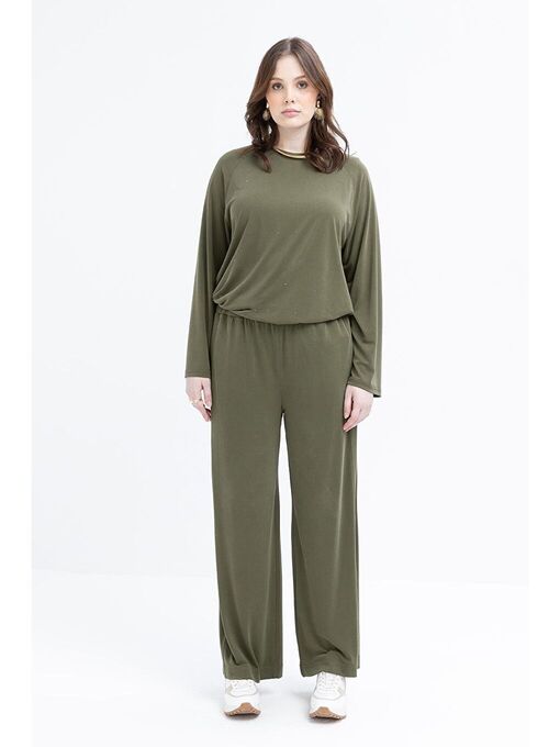 - HAKI-BüYüK BEDEN BELI LASTIKLI GENIş PAçA PANTOLON