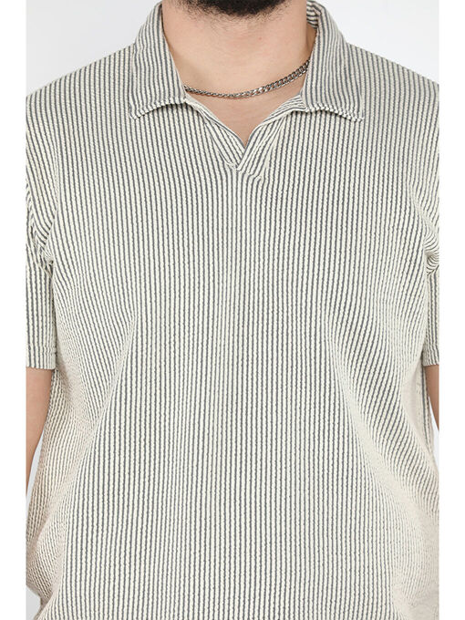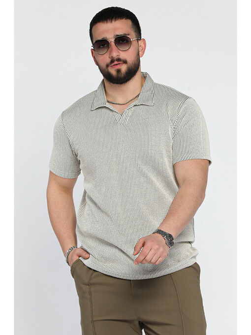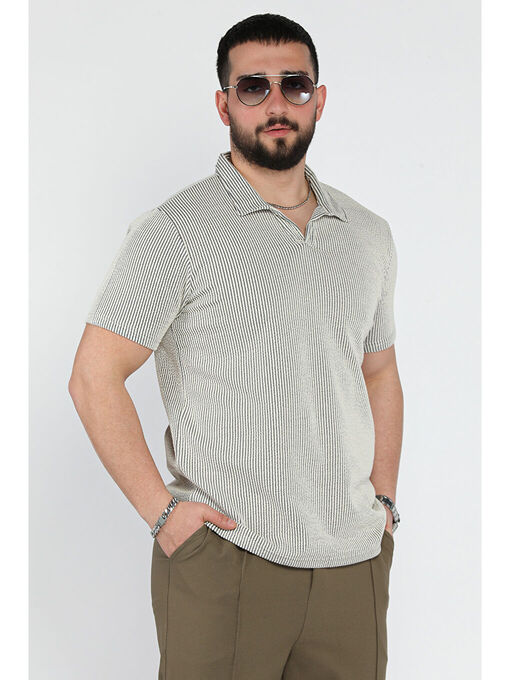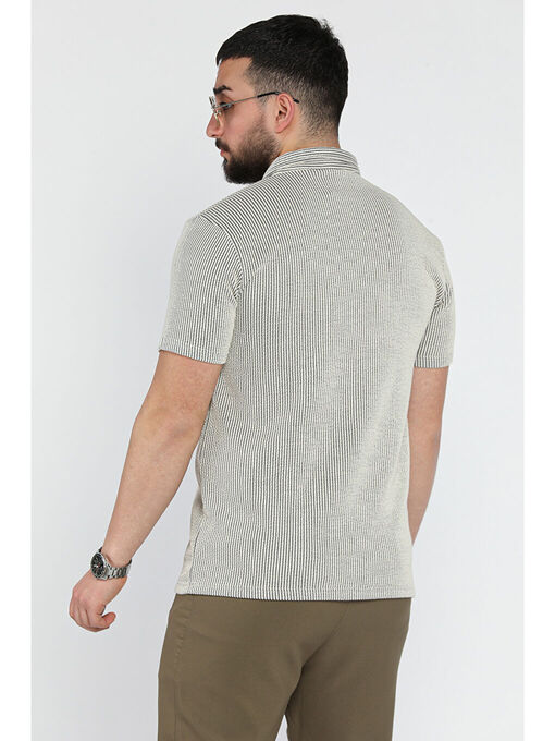 - ERKEK POLO YAKA ÇIZGI DESENLI ELASTANLı TIşöRT