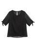 - بلوز زنانه حریر آستر دار یقه گرد آستین گره ای 40102 مشکی طرح دار