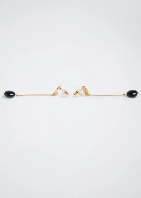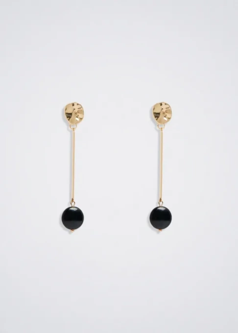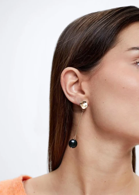 این گوشواره زنانه در دسته Dangle Earrings (آویز) قرار دارد و طراحی زیبا با سنگ سیاه جلوهای مدرن و شیک ایجاد میکند. رنگ مشکی و طلایی باعث میشود این مدل به راحتی با انواع لباسها و زیورآلات دیگر ست شود و برای موقعیتهای روزمره و مهمانی گزینهای ایدهآل باشد.