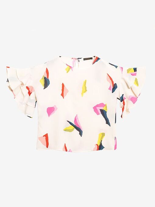- بلوز زنانه کرپ ژرژت سایز بزرگ آستین کلوش 40110 شیری