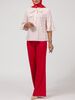 - بلوز زنانه مجلسی آستین سه ربع کلوش یقه کرواتی کرپ ژورژت 40109 قرمز