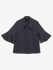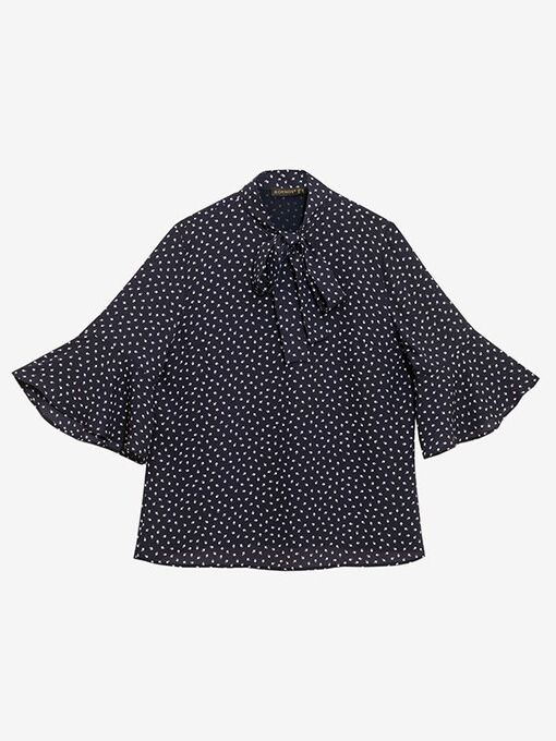 - بلوز زنانه مجلسی آستین سه ربع کلوش یقه کرواتی کرپ ژورژت 40109 سرمه ای