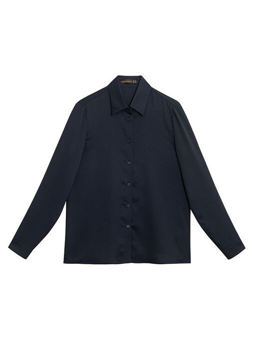 شومیز زنانه بیسیک آستین بلند یقه مردانه 30104 سرمه ای