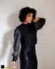 جنس شومیز کرپ حریر در قسمت تنه(بدن نما نیست) و حریر طرحدار در قسمت آستین ها