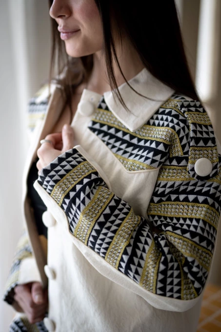کت شلوارک فنسی، شامل یک کت جین کرم رنگ با خرج کار بسیار زیبا و یک شلوارک با همان طرح و جنس است که شما می توانید بصورت ست تهیه کنید.