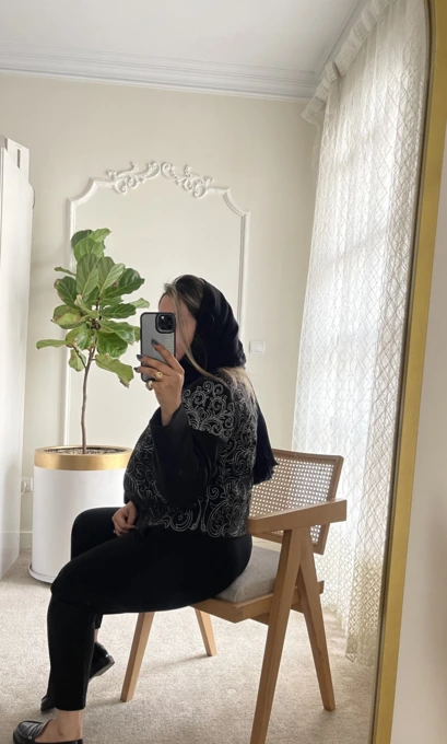 جنس پارچه این کت، فوتر می باشد و تمام داخل کت آسترکشی شدده است. در قسمت پشت ،جلو و سرشانه ها گلدوزی انجام شده.