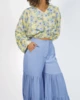 این شلوار برش های افقی دارد و با پارچه کرپ ریزش دار طراحی شده است.