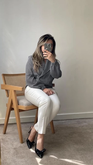 مدل این شومیز یقه آمریکایی و چپ و راستی است.