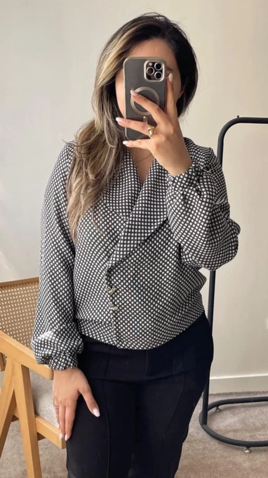 2 عدد دکمه نمای بسیار زیبا جلوه بسیار زیبایی به این شومیز بخشیده است.