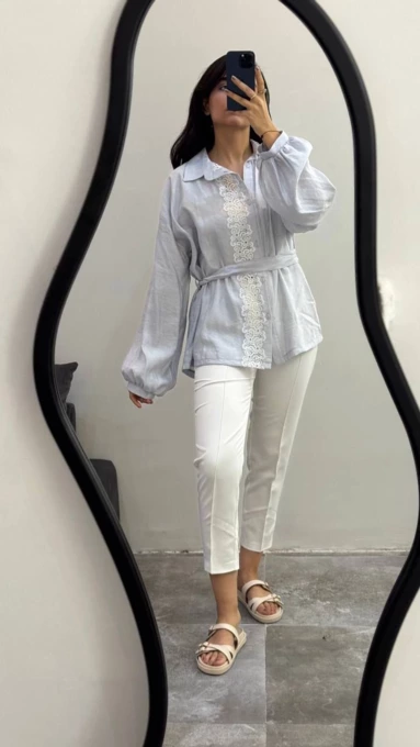 شومیز چام با کد 68BD6593BE8A4-84-E0E0E0 ( شومیز گیپور )