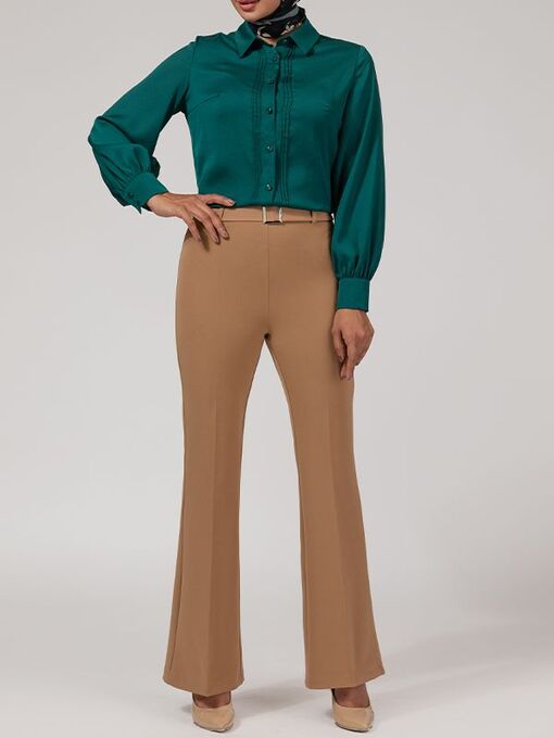 - شلوار زنانه کرپ دمپا گشاد کلاسیک دارای کمربند 10104 نسکافه ای