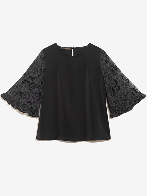 بلوز زنانه مجلسی کرپ آستین کلوش چین دار 40107 مشکی