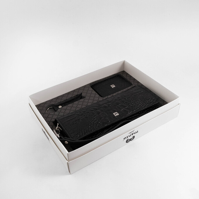 - ست کیف پول پاسپورتی مردانه مدل Y102 مشکی گاندو