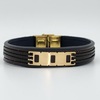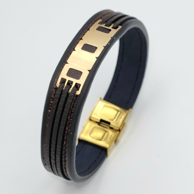 دستبند چرم مردانه قهوه ای رنگ ، به همراه پلاک طلای ۱۸ عیار