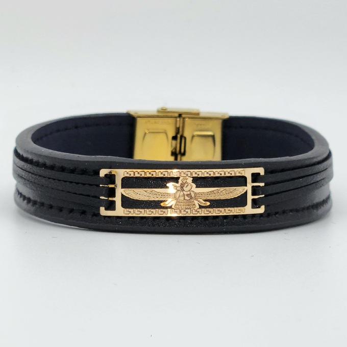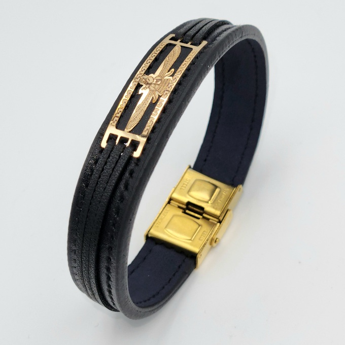 دستبند چرم مردانه مشکی رنگ ، به همراه پلاک طلای ۱۸ عیار