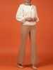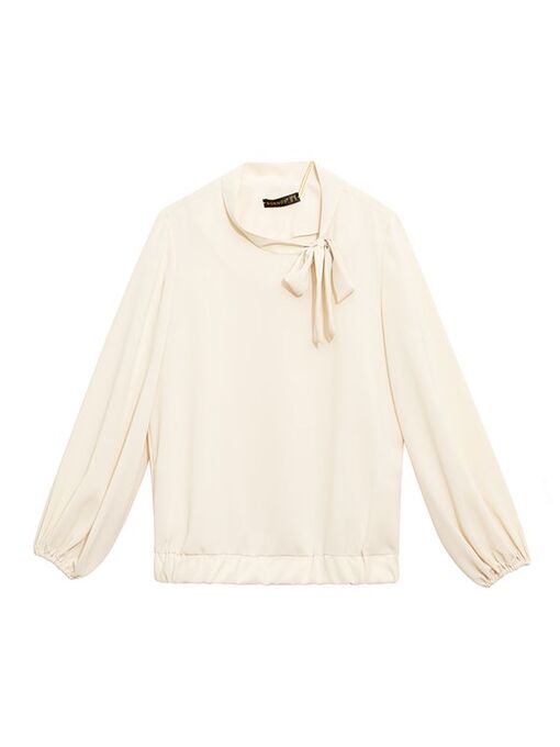 بلوز زنانه آستین بلند یقه کرواتی مچ کشی کرپ 40105 شیری