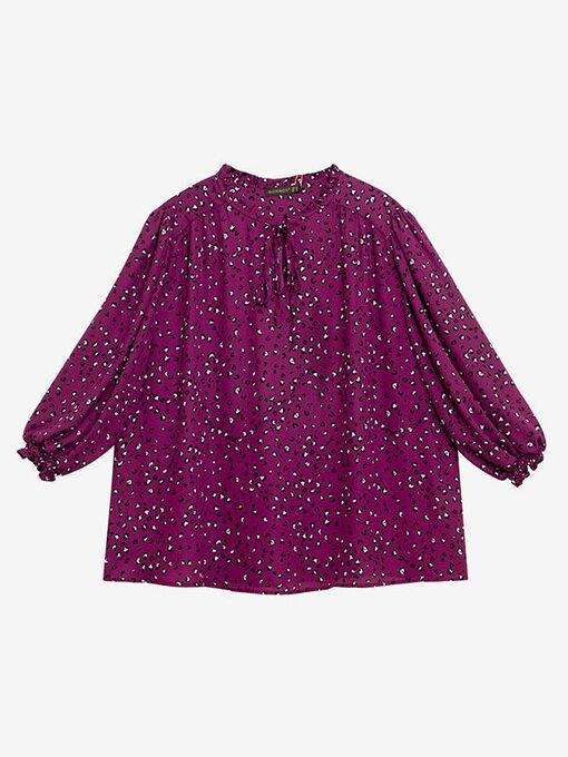 - بلوز زنانه سایز بزرگ کرپ ژورژت یقه ایستاده چین داره 40111 بنفش