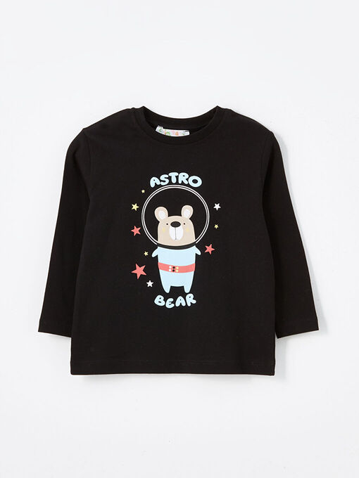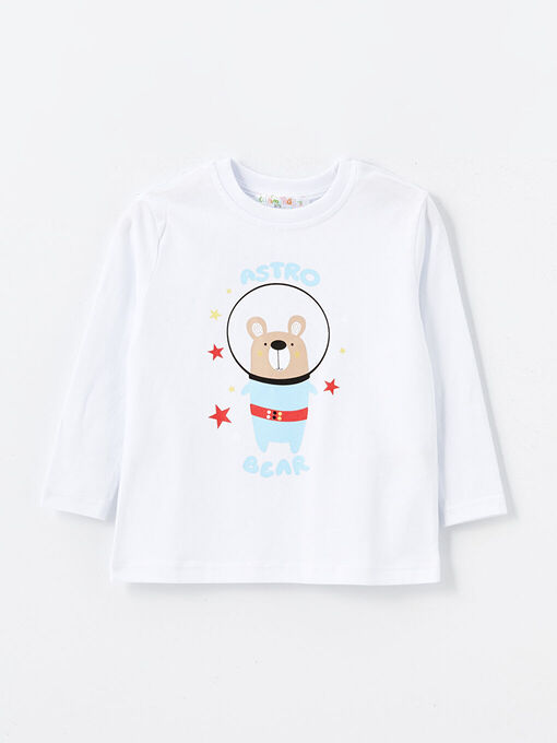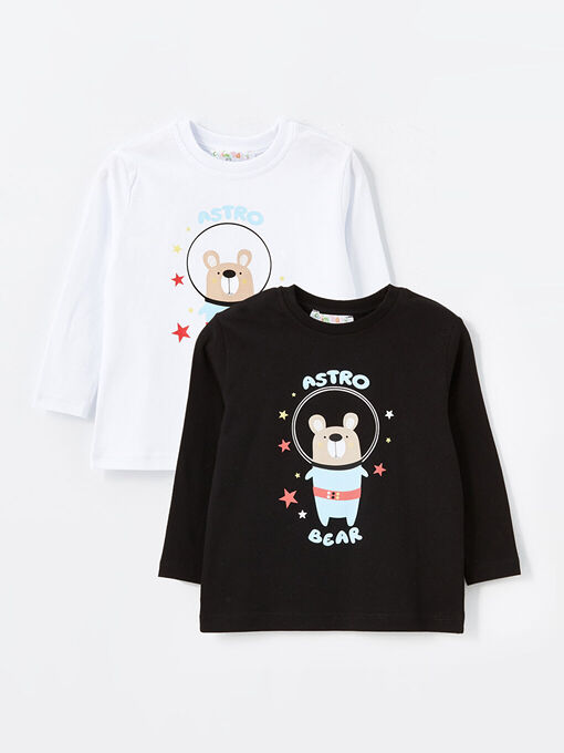 تی شرت آستین بلند ال سی وایکیکی با کد W4K477Z1-764 ( Bisiklet Yaka Baskılı Erkek Bebek Tişört 2'li )