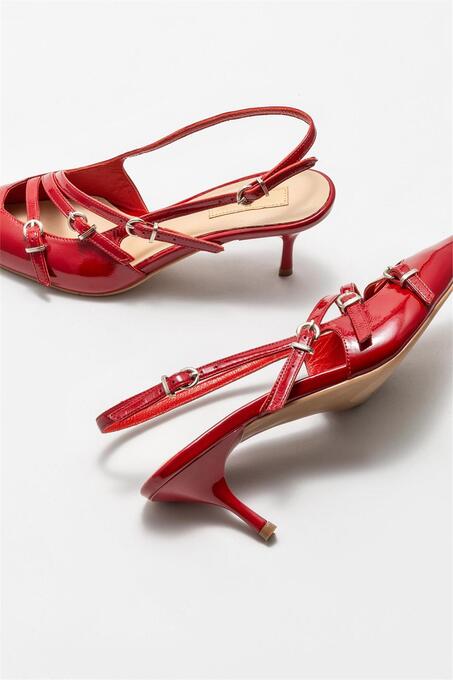کفش پاشنه بلند اله با کد JANIA 5141414 ( Kırmızı Deri Kadın Topuklu Ayakkabı )