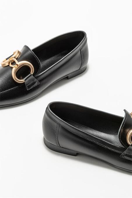 کفش کالج اله با کد YERALES-4 5141437 ( Siyah Deri Kadın Loafer )