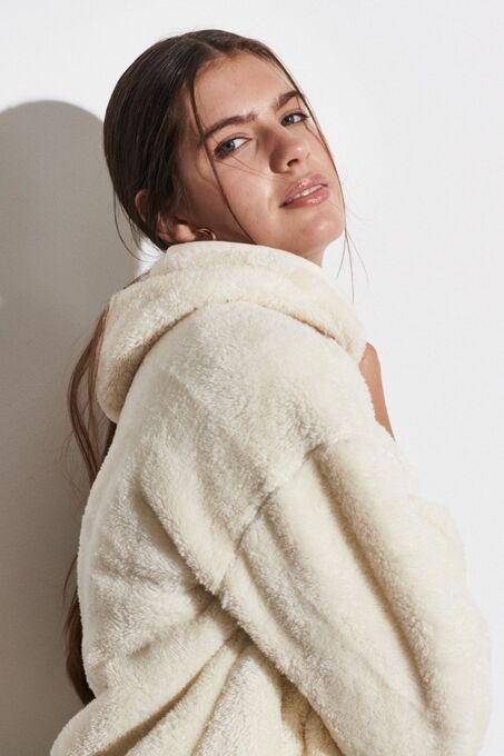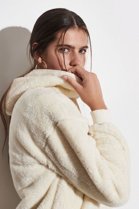 - REGULAR FIT NORMAL KESIM KAPüşONLU SUNI YüNLü KADıN EKRU SWEATSHIRT
