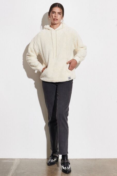 سویشرت و هودی رانگلر با کد W222260 ( Regular Fit Normal Kesim Kapüşonlu Suni Yünlü Kadın Ekru Sweatshirt )