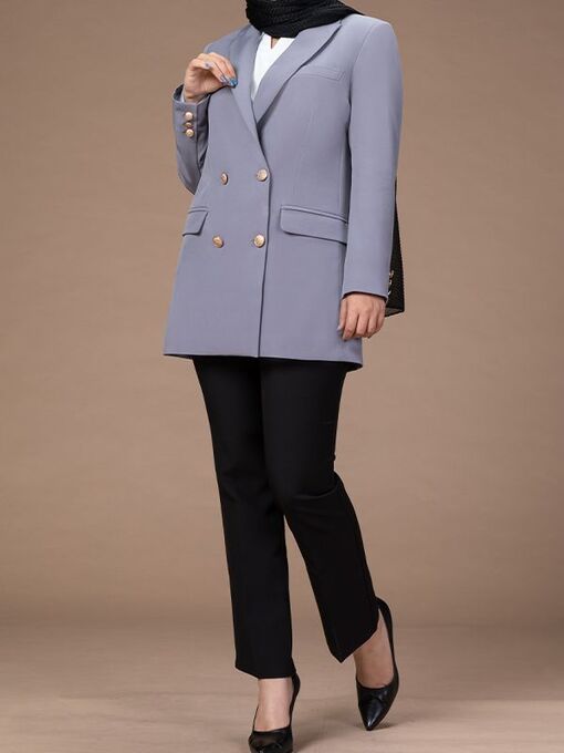 - کت زنانه یقه انگلیسی کرپ مازاراتی دکمه دار آمینا طوسی