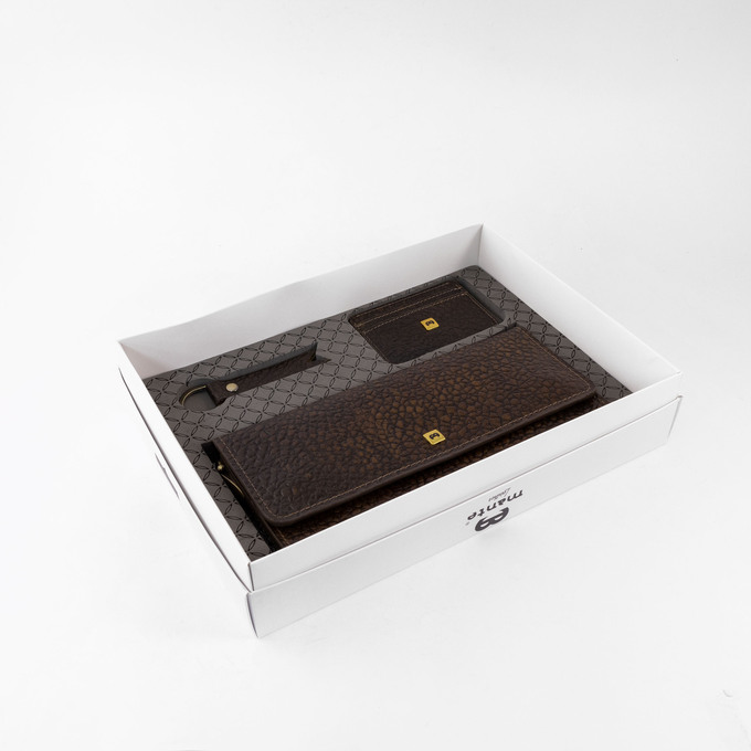 - ست کیف پول پاسپورتی مردانه مدل Y103 cocoa brown