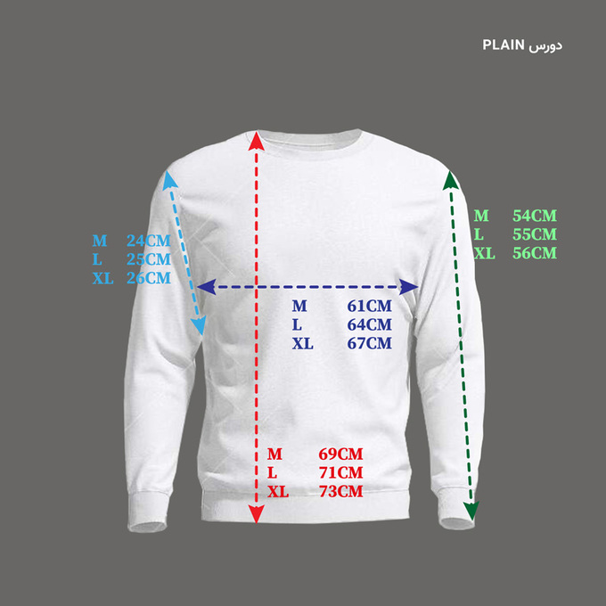 سویشرت دارای سه سایز M,L,XL میباشد که برای انتخاب بهتر به شما توصیه میشود به راهنمای سایزی که در تصاویر محصولات وجود دارد مراجعه کنید.