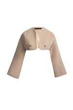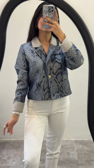 جنس این کت پارچه ژاکارد می باشد و در قسمت یقه و سرآستین از کرپ استفاده شده.