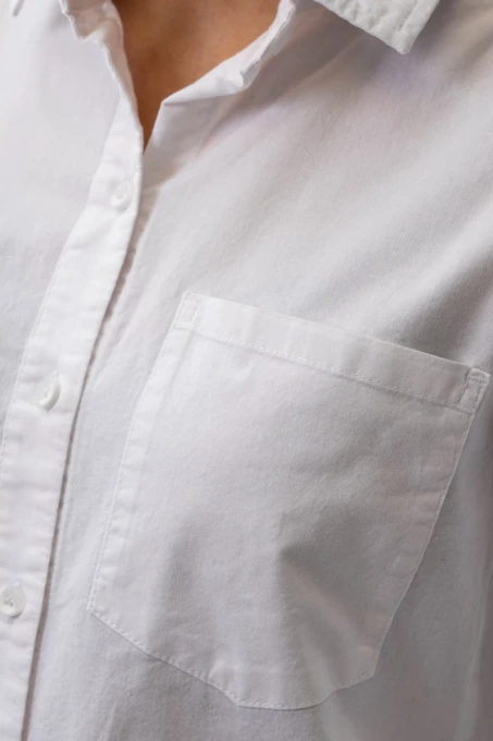 شومیز دارای یک جیب پاکتی در قسمت سینه و سرآستینهای دکمهدار است که جلوهای رسمی و در عین حال اسپرت ایجاد میکند.