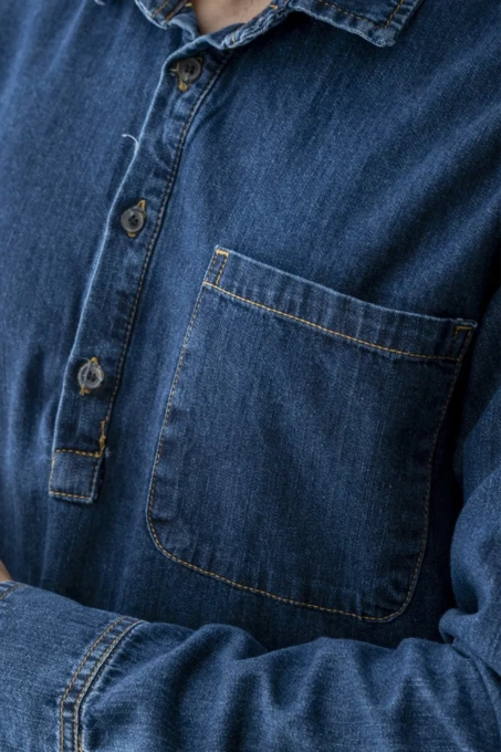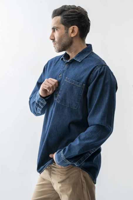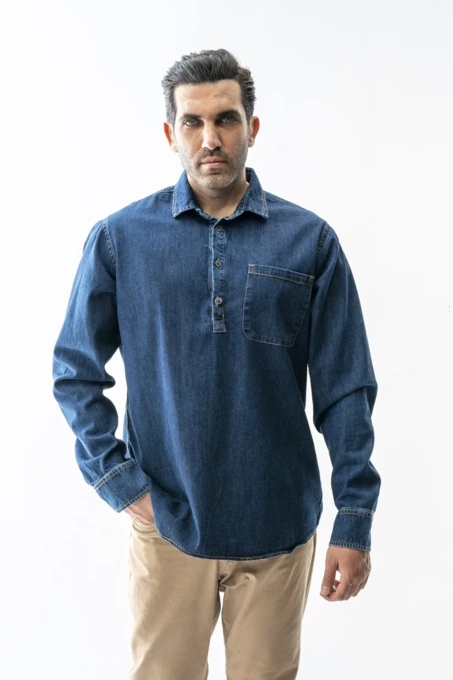 این پیراهن مردانه آستین بلند در سه رنگ جذاب آبی کثیف، آبی روشن و سرمهای عرضه شده و در سایزبندی کامل در دسترس است.