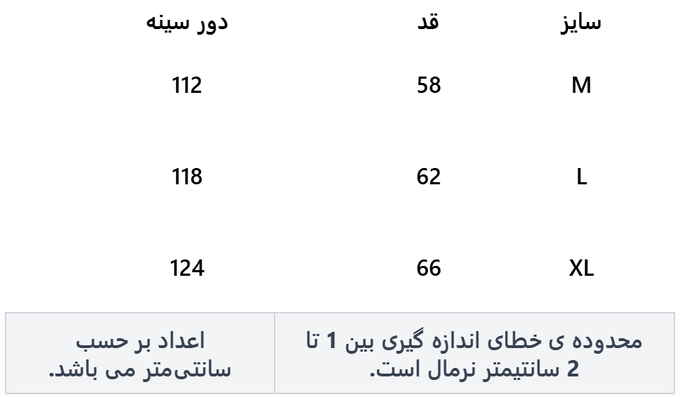 ویژگیها: دارای جیب در برش جلو، سبک و گرم