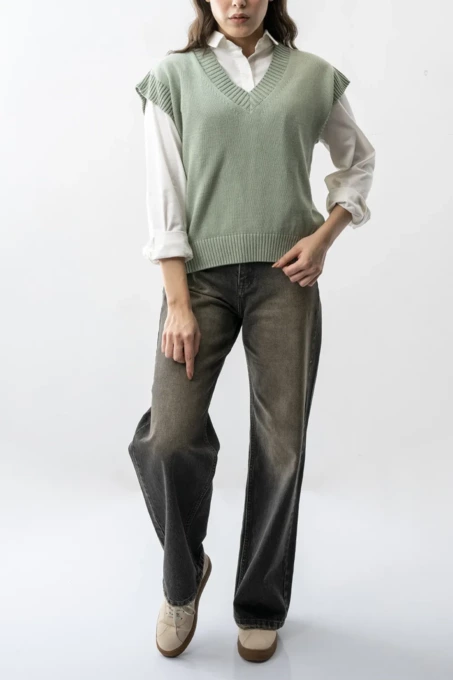 این ژیله با طراحی یقه هفت و آستین حلقهای، بهراحتی روی انواع شومیز، بافت نازک یا تیشرت پوشیده میشود و جلوهای مدرن و مینیمال به استایل شما میدهد.