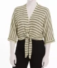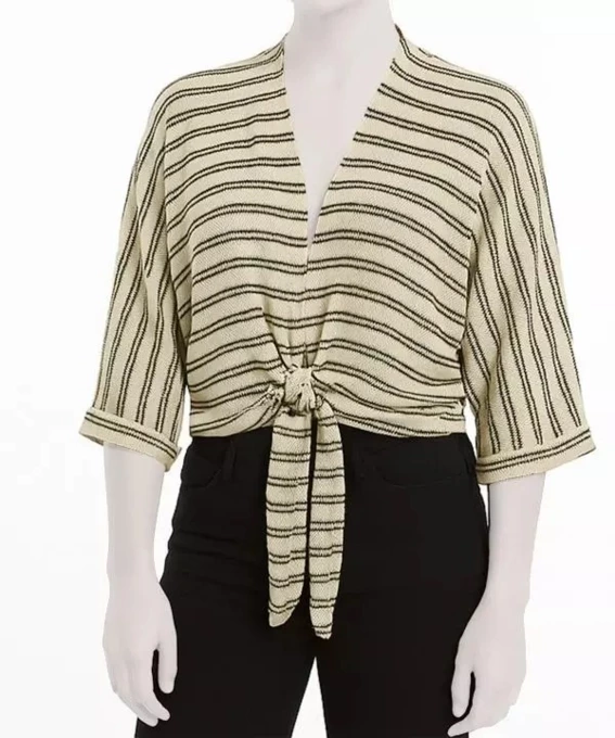 از ویژگیهای کاربردی این بلوز میتوان به سرآستین پاکتی و بند قابل گره زدن در جلو لباس اشاره کرد که امکان ایجاد استایلهای مختلف و شخصیسازی ظاهر را فراهم میکند.