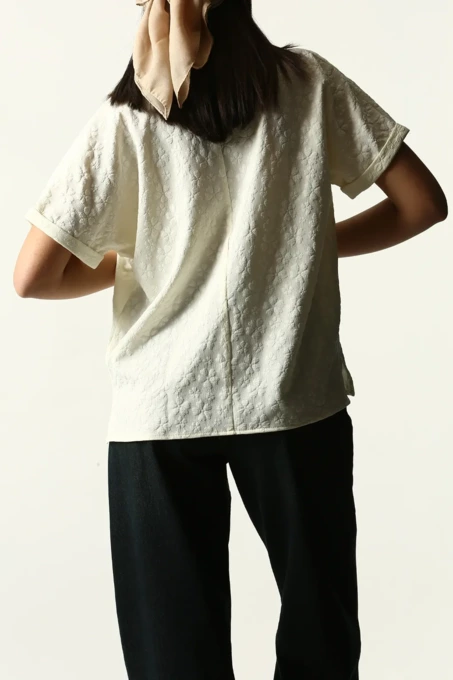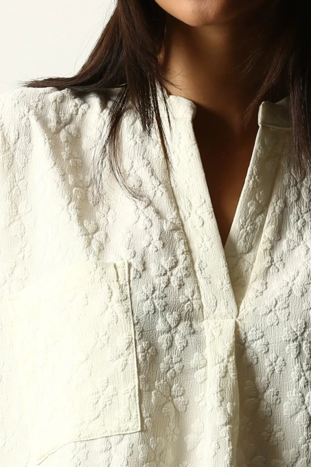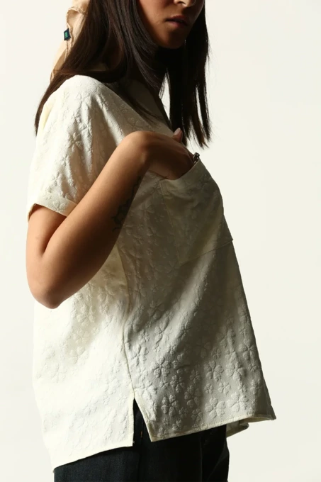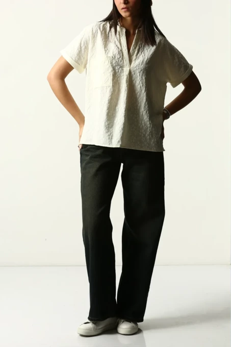 این بلوز با پارچه پلیاستر، طراحی ساده و جزئیات چشمنواز مثل جیب سینه و سرآستین پاکتی، ترکیبی از سادگی و شیکپوشی را به همراه دارد.