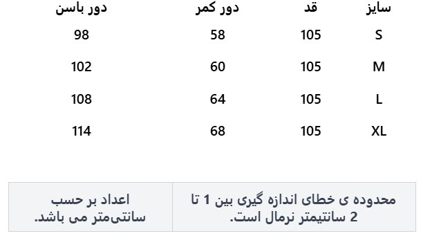 ویژگی پارچه: بدننما بودن ملایم همراه با آستر داخلی در قسمت بالایی شلوار برای حفظ حریم بدن