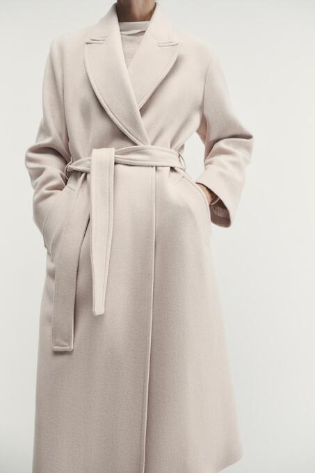 پالتو زارا با کد 493359358-C08471175710016-I202 ( UZUN KEMERLİ YÜN KABAN )