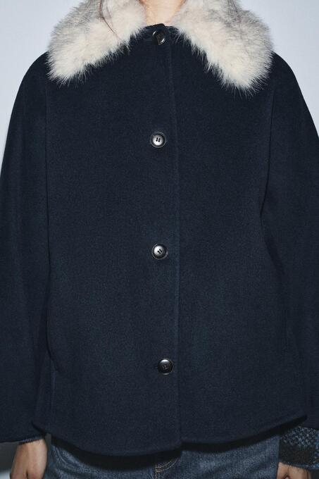 - YÜN KARIŞIMLI SUNİ KÜRK YAKALI KABAN ZW COLLECTION