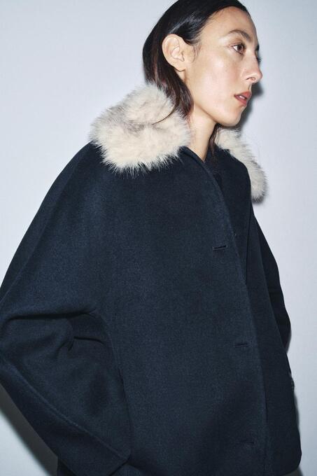 پالتو زارا با کد 491837855-C07522241401015-I202 ( YÜN KARIŞIMLI SUNİ KÜRK YAKALI KABAN ZW COLLECTION )
