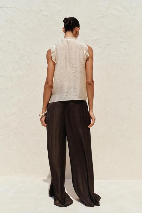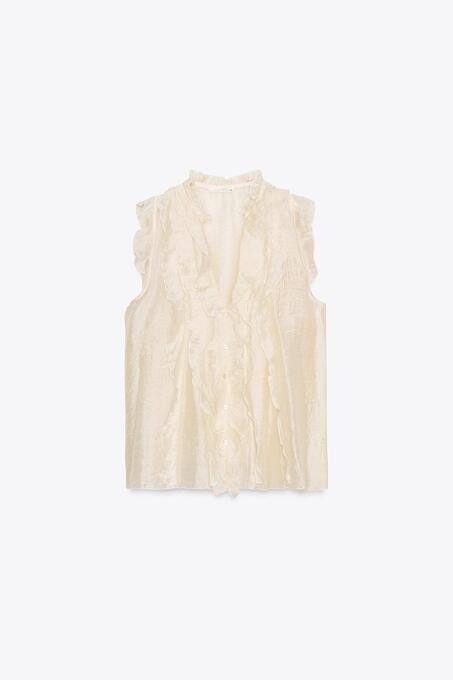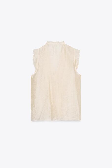 بلوز زارا با کد 459158440-C05029158727000-I202 ( YARI TRANSPARAN VOLANLI TOP )
