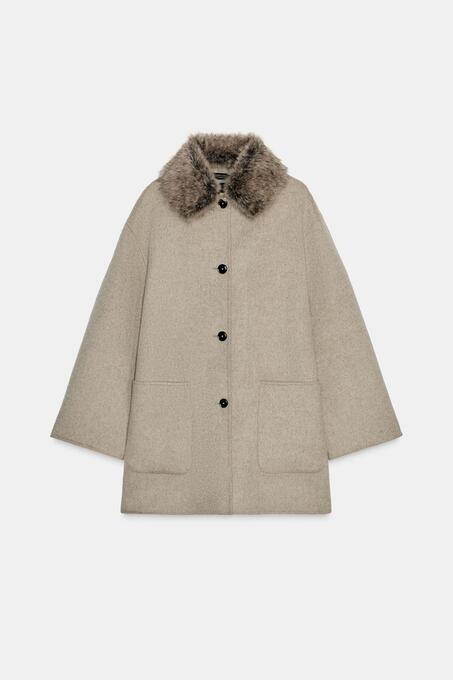 پالتو زارا با کد 494861078-C08491259704020-I202 ( YÜN KARIŞIMLI SUNİ KÜRKLÜ YAKA KABAN ZW COLLECTION )