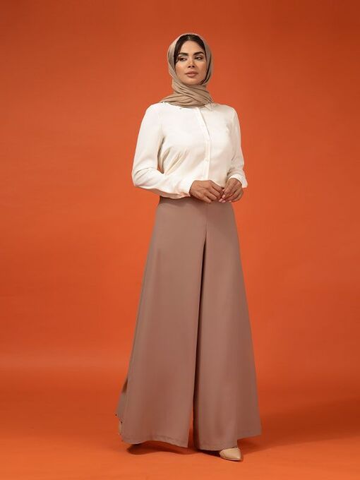 - دامن شلواری زنانه مجلسی فاق بلند کرپ 10102 نسکافه ای