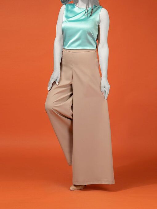 - دامن شلواری زنانه مجلسی فاق بلند کرپ 10102 کرم