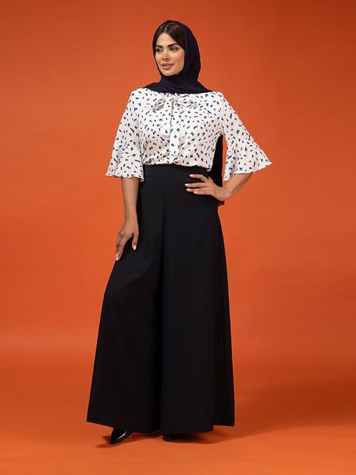 - دامن شلواری زنانه مجلسی فاق بلند کرپ 10102 سرمه ای
